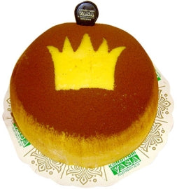Beskrivning: Tårta med sockerkaksanslag och maräng. Fylld med en god vaniljkräm, grädde och banan som sedan dekoreras med marsipan och kakao pudras med den klassiska kronan.