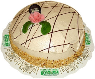Beskrivning: Klassisk fräsch tårta gjord på sockerkaksanslag, fylld med nougattryffel, vaniljkräm och grädde. Dekoreras med nougatkräm och rostade hasselnötter.