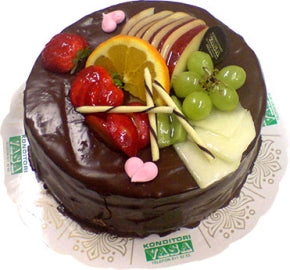 Beskrivning: Viljetårta bakas med sockerkaksanslag, varvas och fylls med vaniljkräm chokladmousse. Dekoreras med mörk tryffel och säsongens frukt och bär.