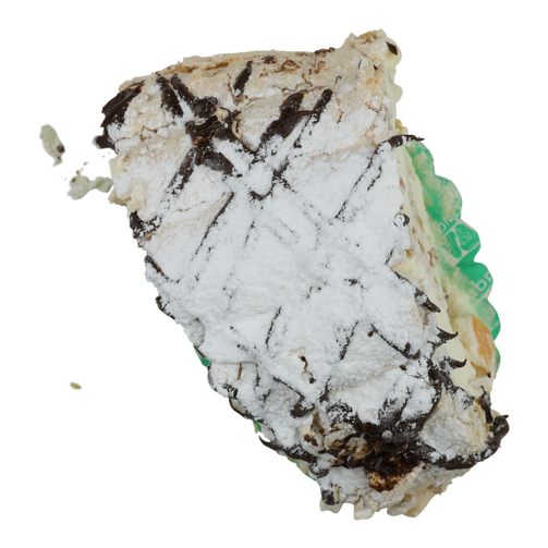 Budapestbakelsen består av en härligt seg nöt-maräng och en fyllning av grädde och friska mandariner. Bakelsen är även dekorerad med florsocker och ringlad mörk choklad.