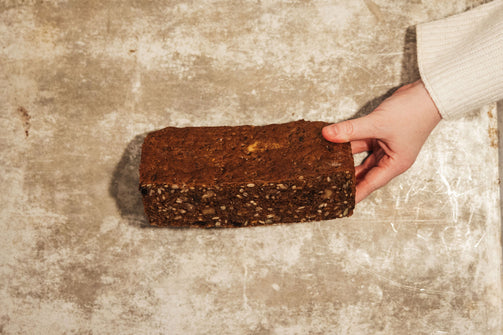 En grov mustig råglimpa som är glutenfri.