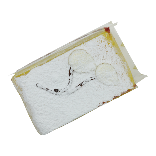 En klassisk, fräsch bakelse med inslag från sockerkakan. Den är fylld med vaniljkräm, hallonsylt och grädde, dekorerad med marsipan och pudrad med florsocker. En bakelse för alla tillfällen!
