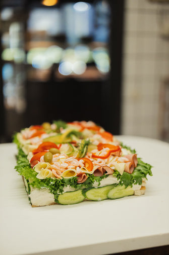 Våra smörgåstårtor passar lika bra till festen, mötet som till släktkalaset. De finns i storlekar från 4 till 24 bitar och innehåller smörgåstårtsbotten, skagenröra, gurkmajonnäs, majonnäs, räkor, skinka, ost och grönsaker. Kontakta oss vid allergier, så hjälper vi dig!
